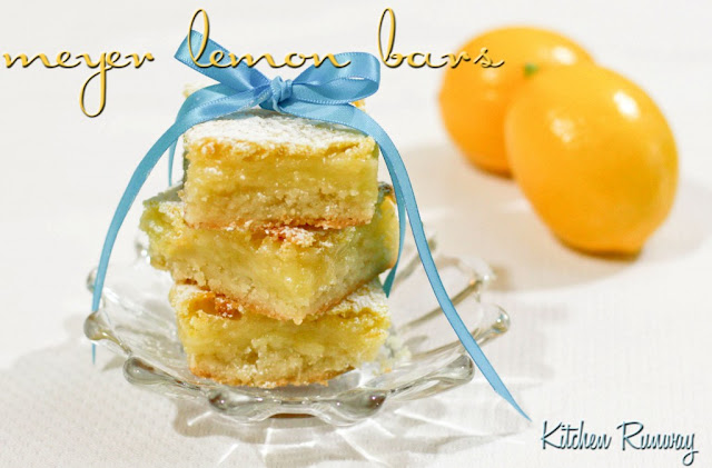 I am here to tell you EVERYONE loved these. I didn't have a chance to take a photo before they were devoured, but the photos provided by Kitchen Runway are what convinced me to try this recipe. Now I need to trade my orange tree for a Meyer lemon tree! They really are this beautiful yellow orange color. Can you blame me?